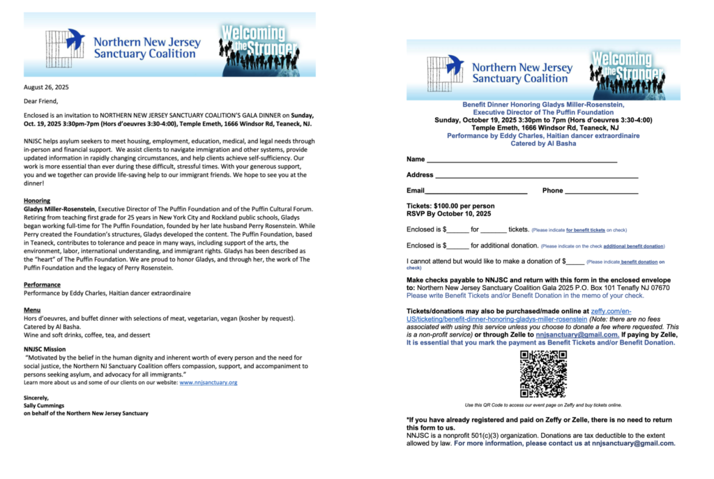 Ticket/ Donation Form: Northern NJ Sanctuary Coalition Gala Invite October 19, 2025