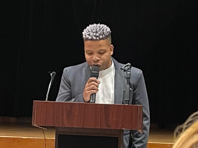 Ruby Cribbin giving the land acknowledgment of the 2025 Dinner